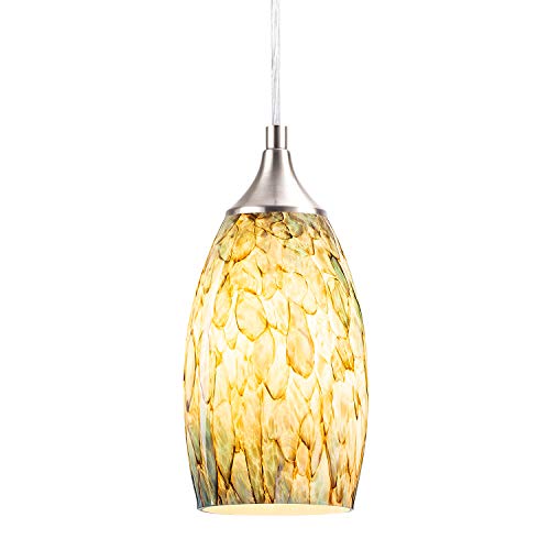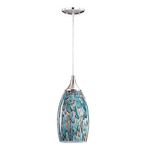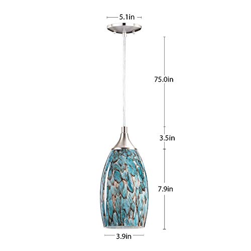COOSA 1-Light Pendant Light, Handcrafted Art Glass Hanging Light with Brushed Nickel Finished Adjustable Cord for…