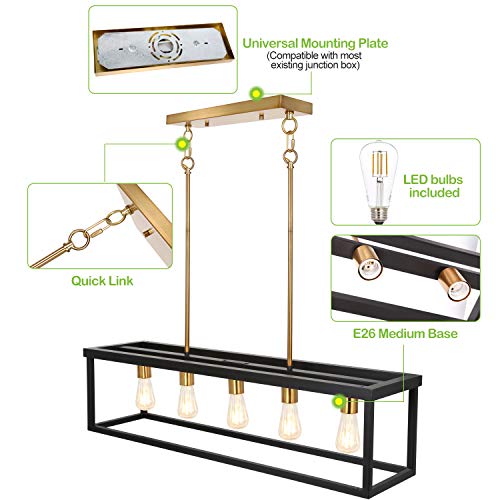 ✔ OPEN CAGE DESIGN – This 5-light rectangular chandelier with brass & black Painting brings vintage appeal and distinctive decorative illumination, Great for any kitchen island, dining room, and living room.