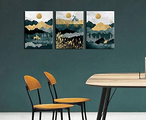 Framed Abstract Mountain Wall Art Dark Green Forest Painting Nordic Style Canvas Pictures Modern Canvas Artwork for Bedroom Living Room Office Wall Decor