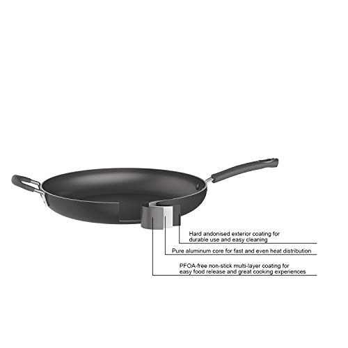 Amazon Basics Hard Anodized Non-Stick 14-Inch Skillet with Helper Handle, Black