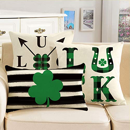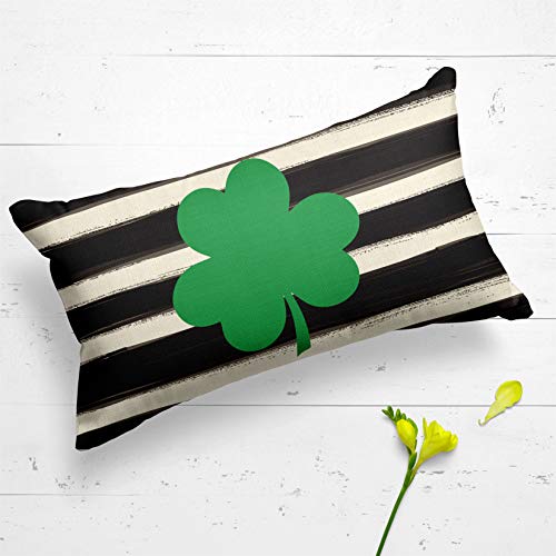 AVOIN colorlife St Patricks Day Clover Black Stripes Throw Pillow Cover, 12 x 20 Inch Shamrock Cushion Case Decoration…