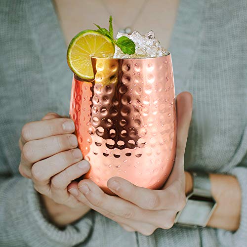 iHarbort Copper Stemless Wine Tumbler Glasses, Set of 2, 18 oz – Stainless Steel Beer Mugs Outdoor Wine glass Tumbler…