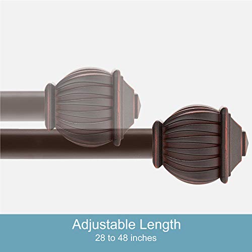 5/8″ diameter curtain rod projects 3.5″ from the wall and adjusts from 28-48″ to fit your window