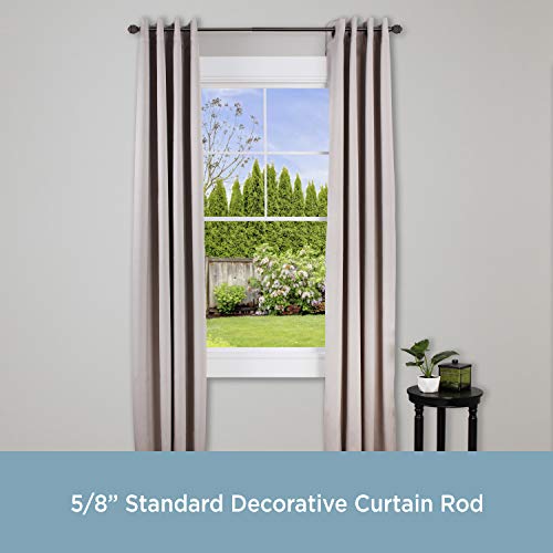 The 5/8 inch diameter Beckett curtain rod in weathered brown features matching soft square shaped finial ends. Use in your kitchen, bedroom, dining room, and living room to hang light to medium weight curtains. The telescoping rod adjusts from 28 inches to 48 inches to fit your window and projects 3.5 inches from the wall. It is ideal for hanging curtains with pockets, grommets, back tabs, and tab tops, but can also be used with clip rings.