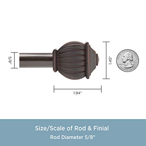 Steel rod in weathered brown finish with decorative finials and matching mounting hardware