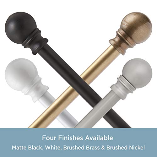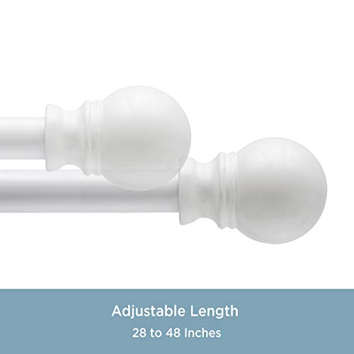 Add a touch of style to your home with the Davenport Petite Café Window Curtain Rod by Kenney. The 1/2 inch diameter Davenport curtain rod in white is a simple way to add style to smaller windows. Use in your kitchen and bathroom to hang lightweight café curtains, sheers, and valances. The telescoping rod adjusts from 28 inches to 48 inches to fit your window and projects 2.75 inches from the wall. It is ideal for hanging curtains with pockets, back tabs, and tab tops, but can also be used with clip rings. Drapery Hardware Set Includes: one telescoping steel curtain rod with decorative molded plastic finials (1.68″ L x 1.15″ W x 1.15″ H), two mounting brackets, screws, drywall anchors, and installation instructions.