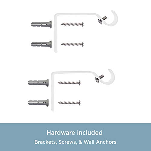 Includes: one telescoping curtain rod with finials, two brackets, screws, drywall anchors, and installation instructions