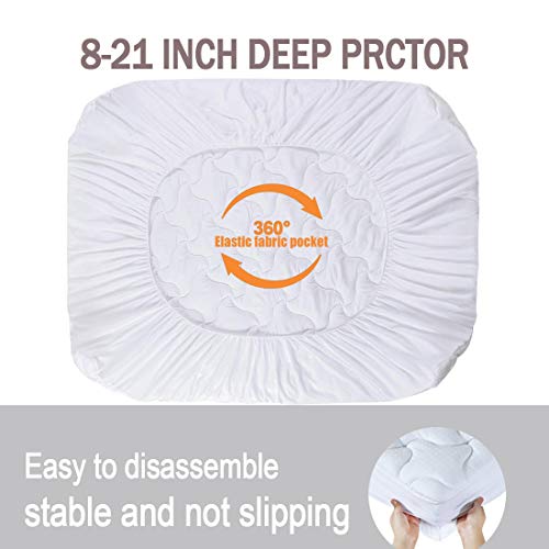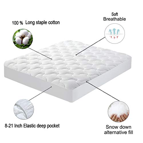 EXTRA DEEP POCKET MATTRESS PAD COVER: elastic skirt stretches to fit mattress up to 21″ deep for universal use, keep mattress pad in place.