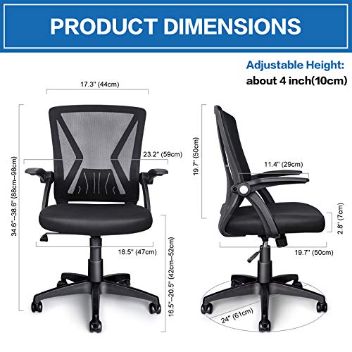 KOLLIEE Mid Back Mesh Office Chair Ergonomic Swivel Black Mesh Computer Chair Flip Up Arms with Lumbar Support…