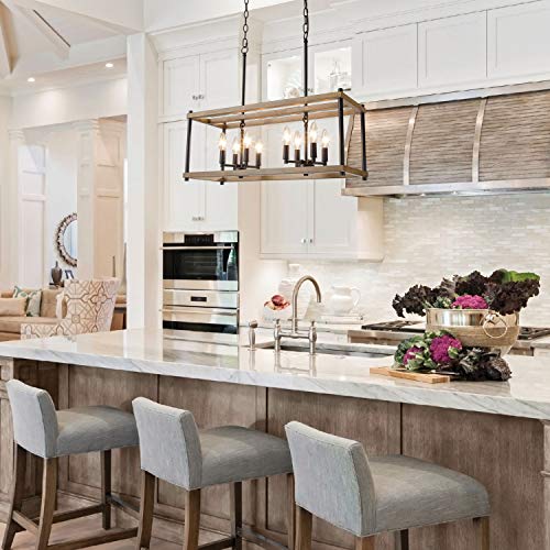 KSANA Farmhouse Chandelier for Dining Rooms, 8-Light Kitchen Island Lighting, Rectangular Chandelier 26” in Length…