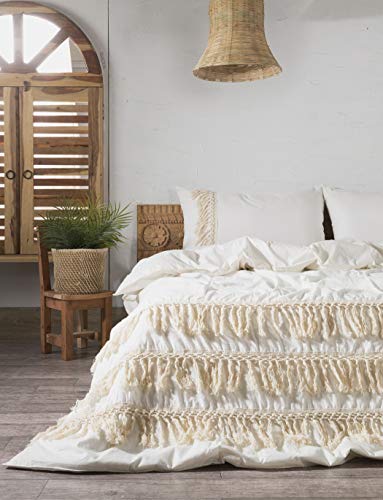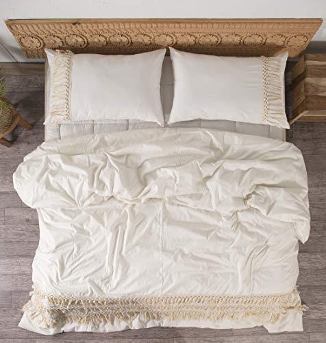 Madhu International Bohemian Duvet Cover Fringed Cotton Tassel 3 Pcs Boho Bedding Donna Cover with 2 Pillow Shams, Ivory…