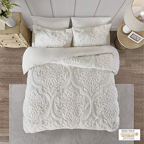 The Madison Park Viola 3 Piece Tufted Cotton Chenille Damask Duvet Cover Set offers the perfect cottage touch to your bedroom décor. A tufted chenille damask design is beautifully displayed on the 100% cotton duvet cover and matching shams, for a soft shabby chic look. Machine washable for easy care, this bedding set is OEKO-TEX certified, meaning it does not contain any harmful substances or chemicals to ensure quality comfort and wellness. A button closure secures a comforter insert within the duvet cover and inside corner ties prevent it from shifting (insert is NOT included).