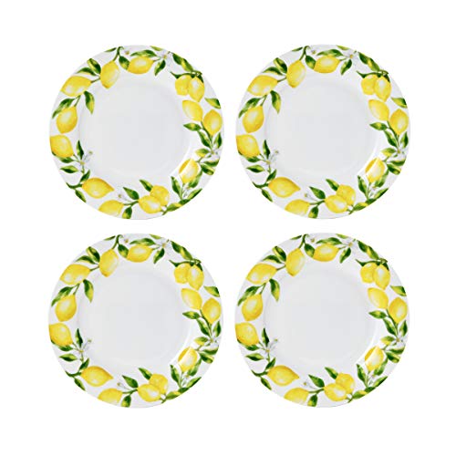 Mikasa Lemons dinnerware features a beautiful lemon decal design. This timeless lemon, floral design, on a sleek round shape is perfect for formal or casual dining. Crafted of bone china. 16 piece dinnerware set, service for four, includes (4) each: 10-1/2 inch dinner plate, 8-1/4 inch salad plate, 6 inch cereal bowl and 13 ounce mug, Microwave and dishwasher safe.