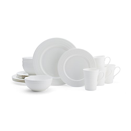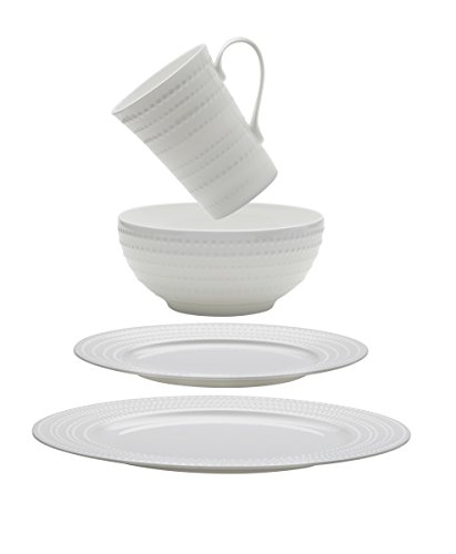 Mikasa Nellie dinnerware features an embossed swirling bead design on elegant bone china. Perfect for everyday dining and entertaining, Nellie is dishwasher and microwave safe. The 16-piece set, service for four, includes (4) each: 11 inch dinner plate, 9 inch salad plate, 5-3/4 inch cereal bowl, 13 ounce mug.