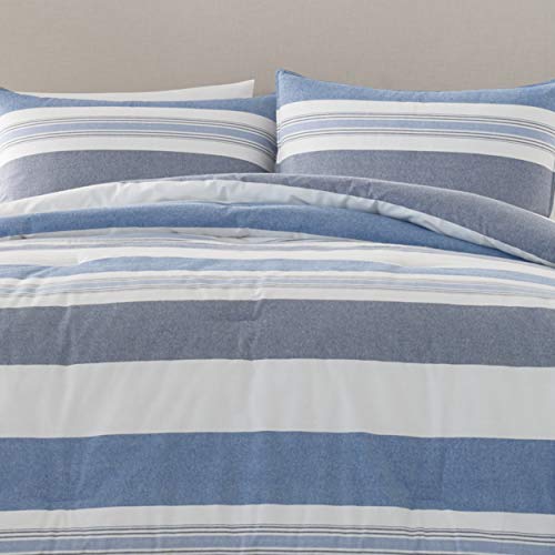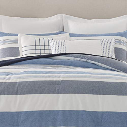 Prepare for a complete seaside escape with the new classic Langford Cotton Comforter Set from Nautica. This yarn-dyed comforter collection is constucted with soft and breathable cotton and features a chic horizontal striped design in calming hues of blue and grey. Add in additional decorative pillows and Euro shams (sold separately) for a more complete bedroom look. Comforter features a polyester fill and the set is machine washable for easy care. Twin comforter set includes: one comforter (90″L x 68″W) and one sham (21″L x 27″W). Full/Queen comforter set includes: one comforter (96″L x 92″W) and two shams (21″L x 27″W). King comforter set includes: one comforter (96″L x 110″W) and two shams (21″L x 37″W).