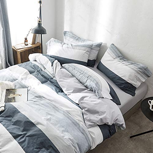Duvet cover with ties at the four corner to hold the comforter and adopt zipper closure.