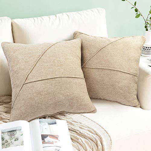 OurWarm Set of 2 Farmhouse Pillow Covers Brown Cotton Linen Throw Pillow Covers 18×18 Inch, Hidden Zipper, Unique…