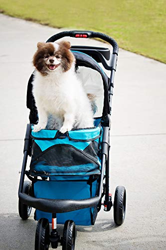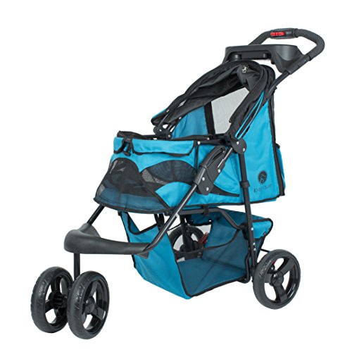 Petique’s Pet Stroller makes strolling down the sidewalk a breeze Literally with ventilating mesh windows all around large EVA tires and double front wheels you and your pets will experience a smooth ride Going shopping or having a picnic? Our pet strollers have a large storage basket two large back pockets and a cup holder tray that holds up to two cups! Our chic design creates an all around great view of the outside world for your pets! Features Large EVA tires and double front wheels for easy maneuvering All around air ventilated windows with chic design Two back pockets great for cell phone keys water snacks etc Cup holder tray – fits up to two cups One hand folding mechanism Large basket for storage Folds standing Fabric can be easily removed for washing Supports pets up to 35 lbs Front wheel swivels and locks Rain cover Not included Care Instructions Removable fabric for easy wash Gentle machine wash Do not dry in dryer Line dry ONLY Do not bleach Dimensions 33″L X 16″W X 35″H with 8″ wheels