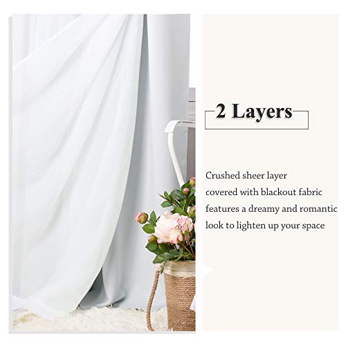 DISTINCTIVE DESIGN: Crushed sheer layer covered with one blackout curtain panel features a dreamy and romantic look to liven up any home decor and give you versatile layer options. The curtain comes with one blackout tie-back and one crushed voile velcro for different styling