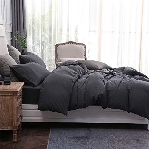 PURE ERA Jersey Knit Duvet Cover Set 100% T-Shirt Cotton Super Soft Comfy 3pc Bedding Set with Zipper Closure (Heather…
