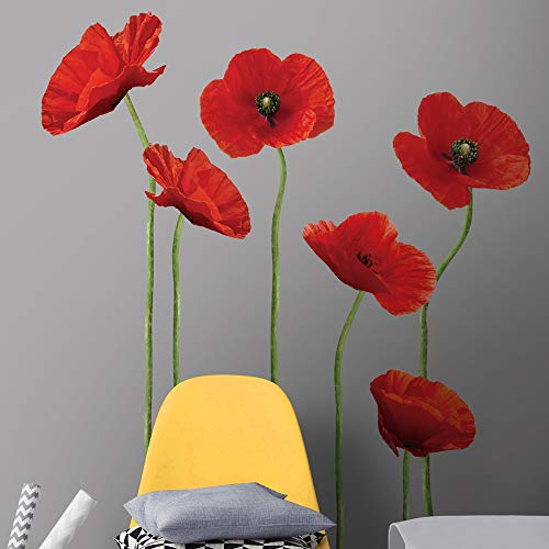 Dress up any room with this perky, playful red poppies. This photorealistic flowers are a surefire way to add a touch of spring to a living room, dining area, bedroom, or even the small space of a hallway or bathroom. Application is a cinch: just peel each pre-cut portion from the liner and stick it to the wall. You can move around the blooms and stems as much as you want until you’ve created your own custom configuration.