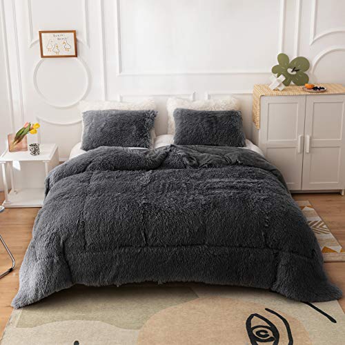 Smoofy Fluffy Comforter Queen Set, Fuzzy Comforter, Velvet Comforter with 2 Pillowcases, Ultra Soft Warm and Durable…