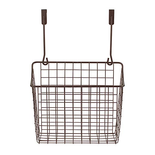 Maximize your bathroom and kitchen storage by utilizing dead cabinet space with the Grid Over-the-Cabinet Storage Basket from Spectrum Diversified. The padded brackets slide over cabinet doors to utilize the open space inside the storage area. Use it in the kitchen to hold extra dishrags, sponges, dish soap, and cleaning supplies. Keep it in the bathroom to store extra soap, shampoo, conditioner, loofahs, makeup and remover, cotton swabs, hair products, styling tools, and candles. The sturdy steel supports a significant amount of weight, and the scooped front makes it easy to pull items out of the basket. The grid design melds into any design scheme, from rustic farmhouse to modern. Over-the-cabinet brackets are padded to protect your cupboards from scratches. Perfect for rental homes, apartments, dorms, RVs, and other small space living accommodations. These baskets are also ideal for those who do not want to drill into cabinetry. Homeowners, renters, and college students will all benefit from the increased storage capacity and lack of installation. Made of sturdy steel.