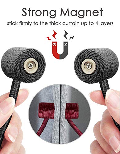 ❤UPGRADE MAGNET: The upgraded strong magnet provides a perfect hold for both thick and sheer curtains and stays firmly in long-time use. The magnet parts with nickel plating which are durable and anti-rust. it’s covered by smooth decorative anti-ravel weave rope so it could protect your curtain well.