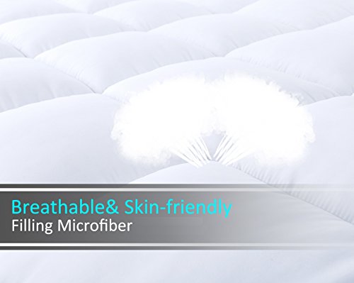 【REFRESH YOUR OLD MATTRESS】: this white quilted firm enough bed pad adds a pillow top softness and exceptional comfort to your mattress and increase great elegance to it and feels your mattress just like New. Also a great gift for your familiy or friends.