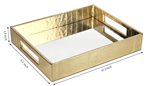Vixdonos Decorative Mirror Tray,Gold Vanity Tray,Leather Catchall Organizer for Makeup,Perfume and Cosmetic on Dresser…