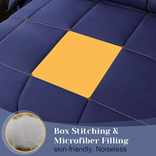 WhatsBedding King Down Alternative Summer Comforter- All Season Navy Blue Lightweight Duvet Insert or Stand-Alone…