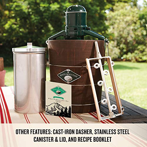 Enjoy rich, creamy homemade ice cream with the White Mountain Electric Ice Cream Maker. This electric ice cream maker is equipped with a state-of-the-art commercial-grade motor that provides superior starting and running torque for churning and blending the ice cream to the smoothest consistency. The ice cream maker machine uses triple-motion action to continuously fold the ingredient mixture from the outer walls back onto itself, creating smooth, creamy ice cream that tastes just as delicious as you remember. The patented cast iron dasher system is designed to never warp, while the beech wood blades are self-adjusting to ensure uniform scraping of the ice cream mixture from the canister’s interior wall. The heavy-duty stainless steel canister provides years of ice cream making service, and the premium dark wood stained bucket is handcrafted from select New England pine and bound with strong galvanized hoops and electroplated fittings to ensure lasting stability. Great for parties, family get-togethers, and warm summer days, the White Mountain Electric Ice Cream Maker is the life of any party.