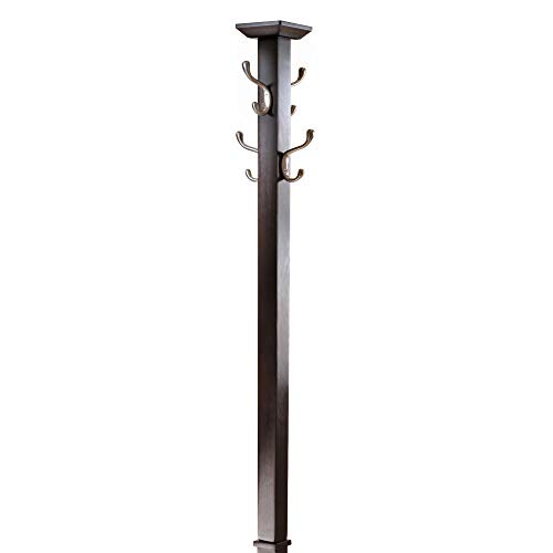 Perfect for your front entry way to greet your coats, umbrellas or hats. Comes with four double hooks and storage rack. Storage has four sections with each has 5-Inch W x 5-Inch D x 17-Inch H. Double metal hooks made of zinc alloy with satin nickel finish. Coat Tree is made from combination of solid and composite wood in Cappuccino Finish. Assembly Required. The color you see may not exactly match the product color, and may depend, in part, upon the monitor you are using